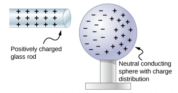While the conductor is still neutrally charged, it now has charge distribution, forming an electric dipole through inducing polarization.